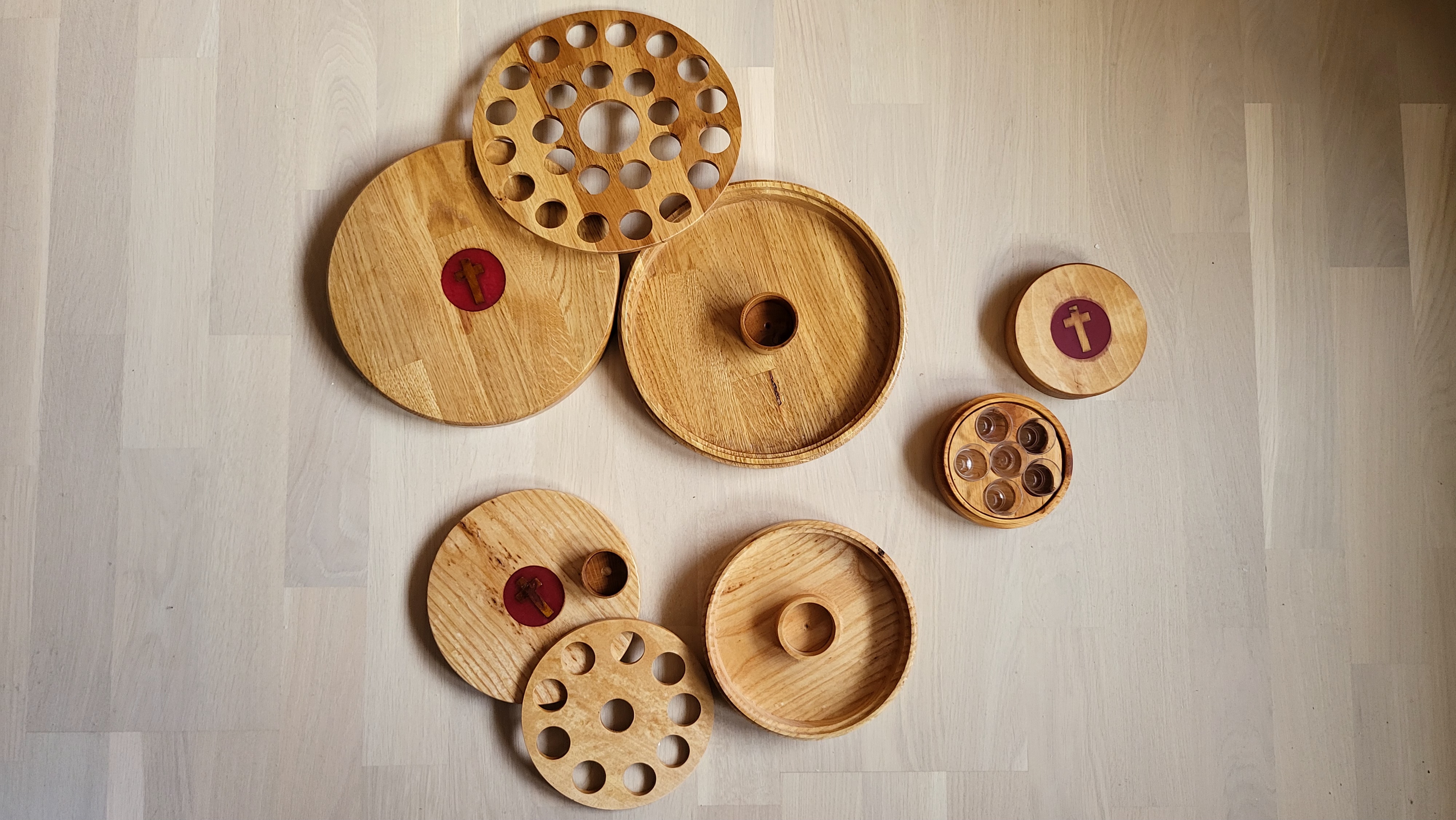 Her har jeg laget nattverdsett som kan brukes i foreningen, som besøkssett eller av den omreisende emisæren.